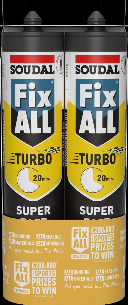 The Fix ALL Turbo White Duo Pack provides great value and convenience for professionals and DIY users needing rapid curing adhesive performance across multiple tasks, with two 290ml cartridges ensuring consistent strength, flexibility and a bright white finish.