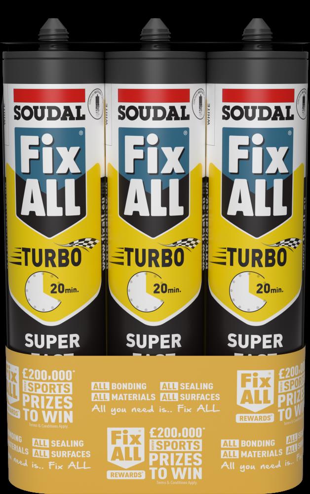 The Fix ALL Turbo White Triple Pack contains three 290ml cartridges of this ultra fast curing hybrid polymer adhesive and sealant. Using advanced SMX Polymer Technology, Fix ALL Turbo delivers exceptionally rapid strength development—ideal for projects that demand quick handling, fast turnaround times and strong, reliable bonding.