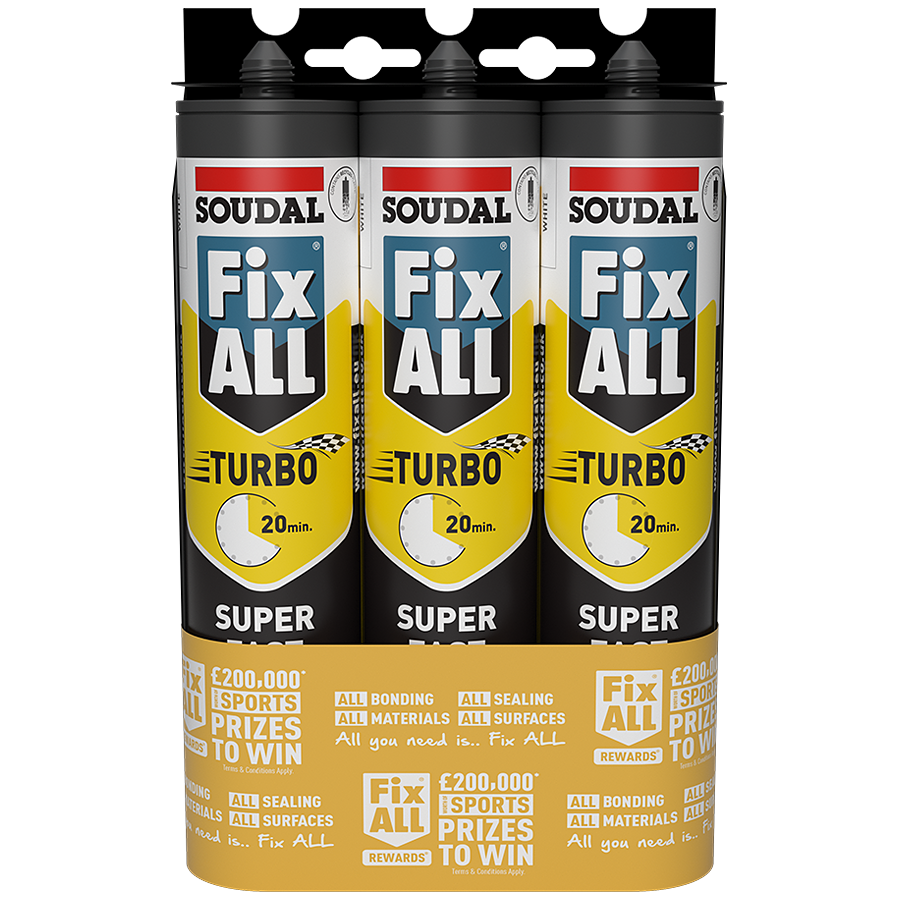 The Fix ALL Turbo White Triple Pack offers excellent convenience and value for high-demand sealing and bonding tasks. With three 290ml cartridges, it provides fast, strong and flexible adhesive performance suited to both professional trades and advanced DIY users.